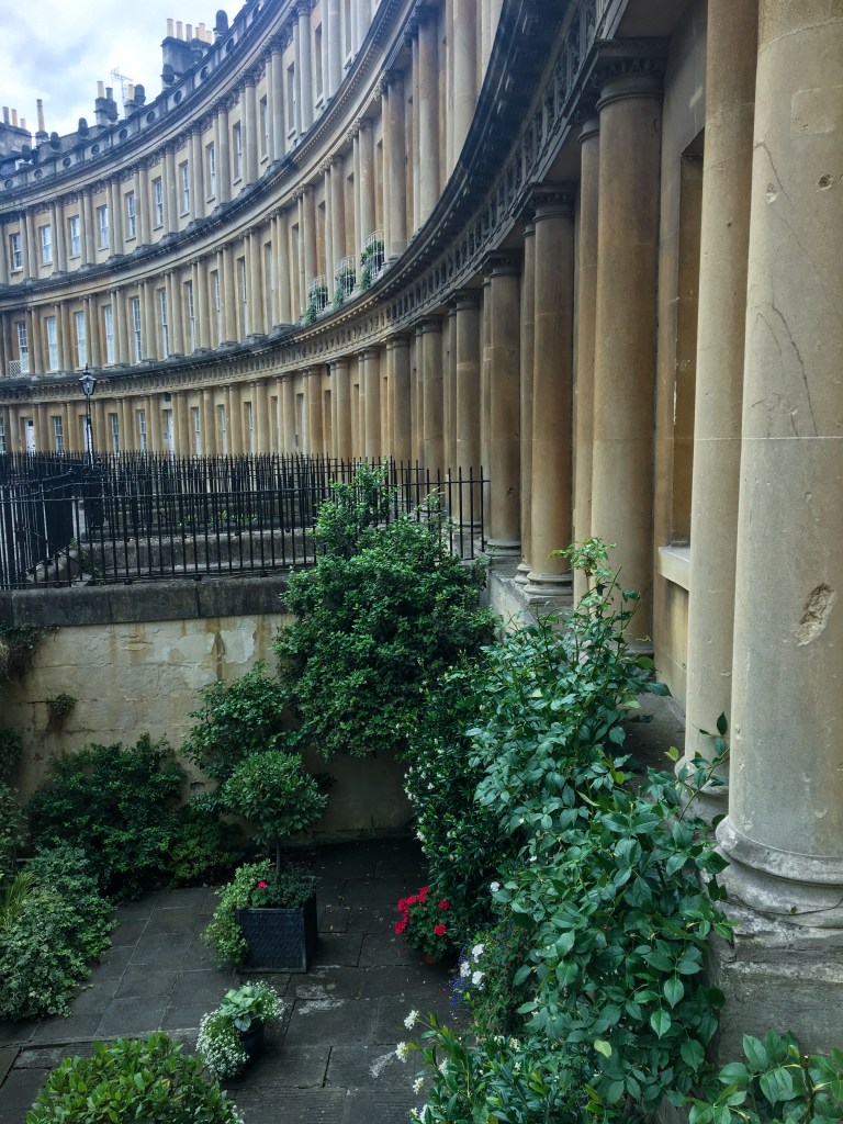 The most iconic places to walk around are the Royal Crescent and the Royal Circus. These streets are what you see in movies and postcards. The Royal Crescent is a residential street of terraced houses built in the late 1700s. Similarly, the circus is houses but instead of a half circle, it is a full circle of buildings with a roundabout in the center. Both streets really bring the Regency vibes.
